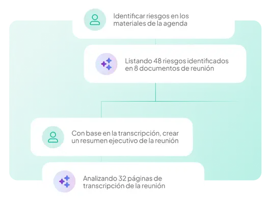 Atlas AI redacta pautas, genera atas a partir de transcripciones, extrae información relevante de los materiales del consejo y compara versiones de documentos a lo largo de todo el ciclo de reuniones. La IA se encarga de la preparación. Usted toma las decisiones.